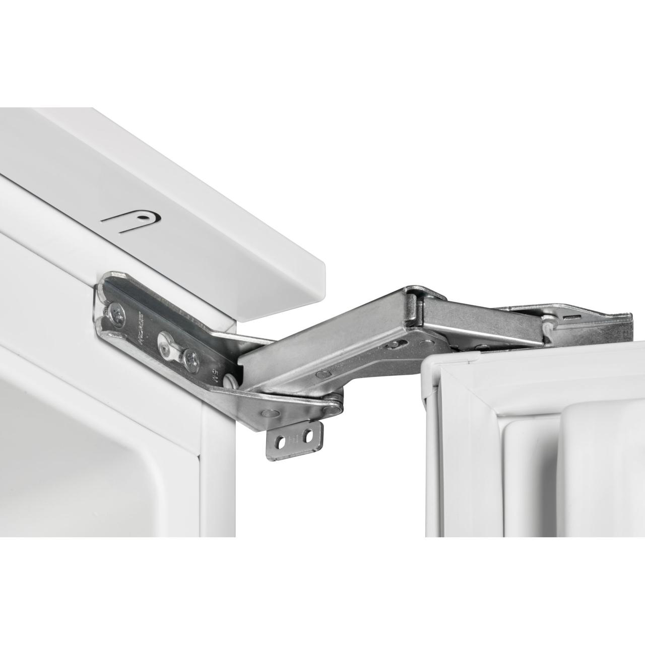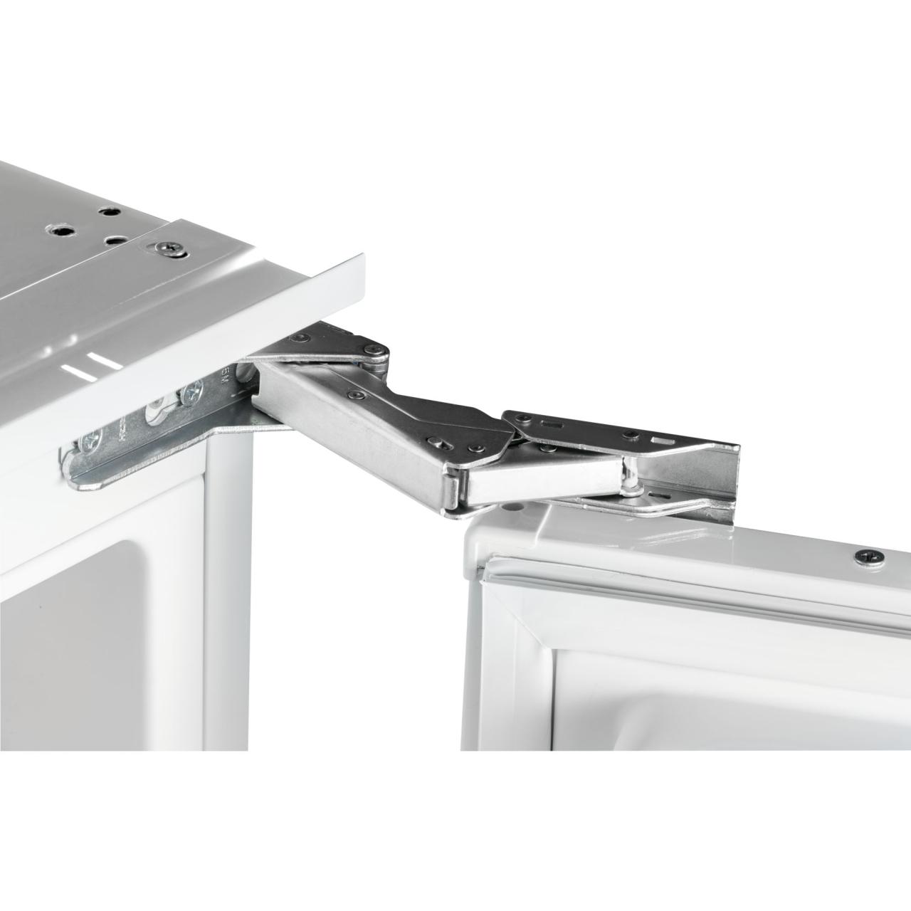 Холодильник имеет жесткую систему крепления фасадов. При таком монтаже фасады не связаны с корпусом шкафа и не предполагают наличие дополнительных петель. Конструкция не ограничена углом открывания и не имеет зазоров, в которых может скапливаться пыль и грязь.