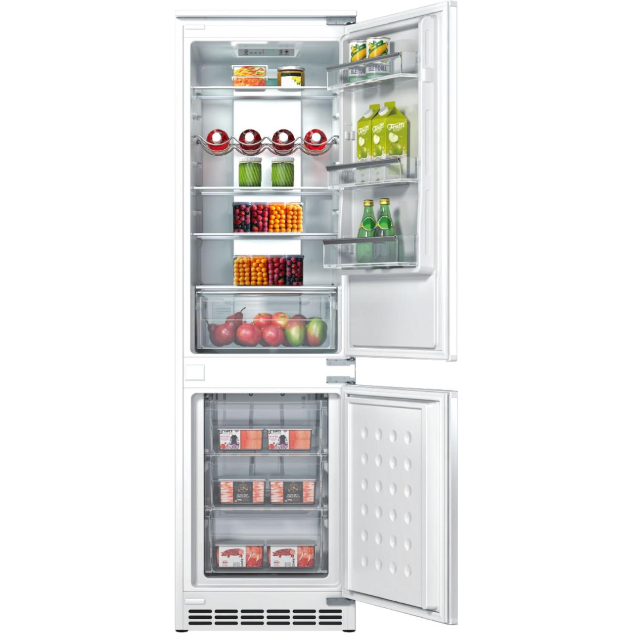 Встраиваемый холодильник HIBERG i-RFCB-400F NFW с инверторным компрессором, автоматической системой охлаждения Total No Frost и электронным управлением — идеальный выбор для встраивания в кухонный гарнитур и создания комфортного пространства на кухне. Двери холодильника можно повесить на правую или левую сторону. Это позволяет открывать их в удобном направлении и устанавливать технику в любом месте. Корпус модели выполнен в белом цвете.